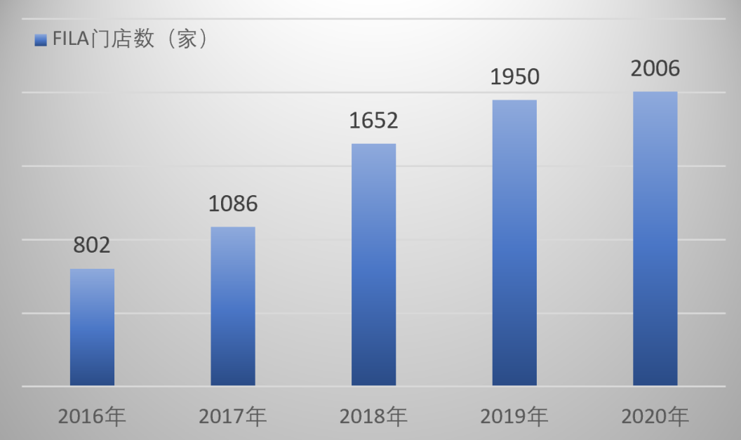 安踏还趁着FILA品牌的全球复苏快速扩店,2016年安踏拥有的FILA门店(包括中国内地、香港、澳门和新加坡)仅802家,2020年已经达到2006家,扩张趋势迅猛。