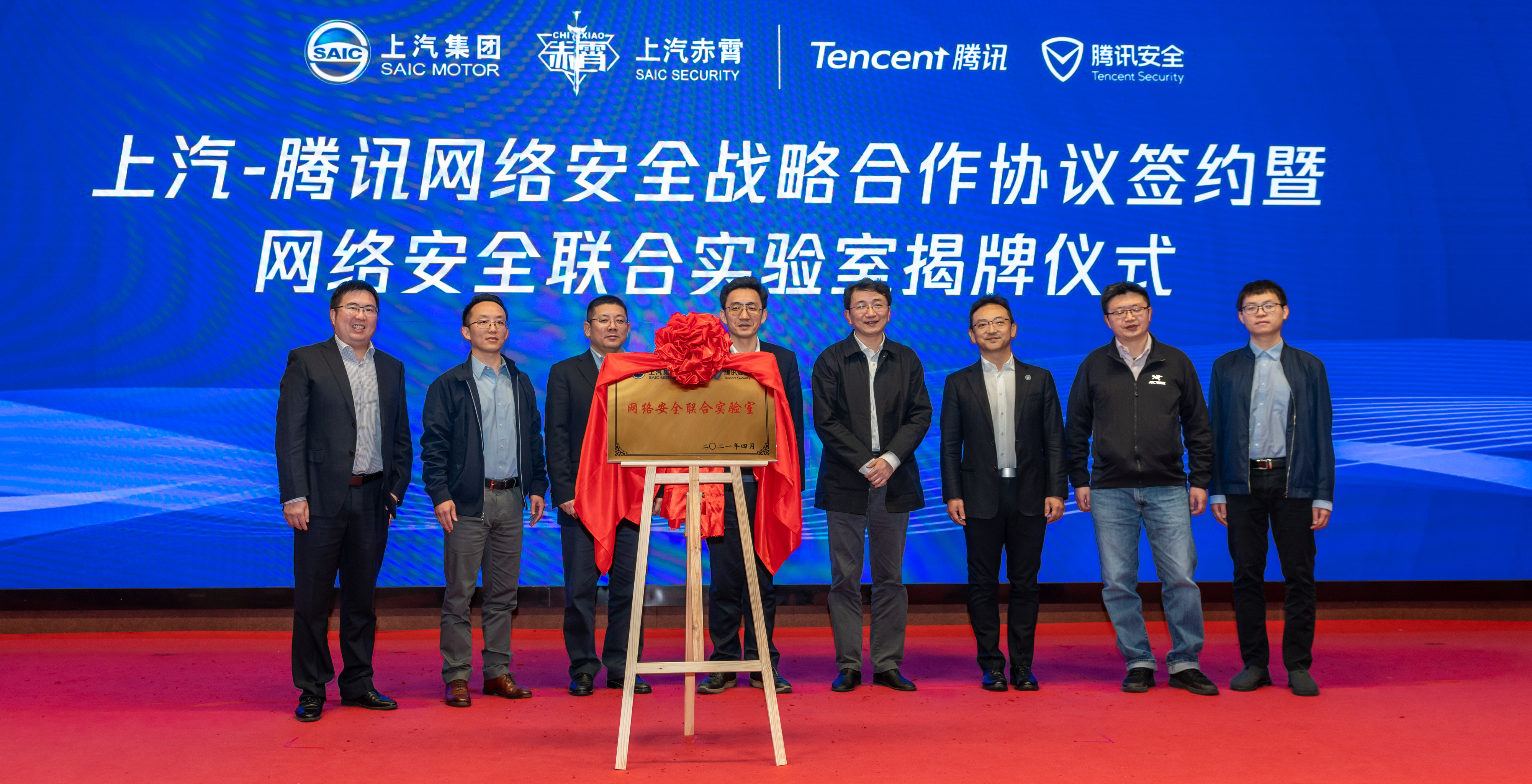 在网络安全联合实验室挂牌仪式上,双方宣布将共同发力网络安全,有效保障智能网联汽车用户的个人隐私、数据安全。