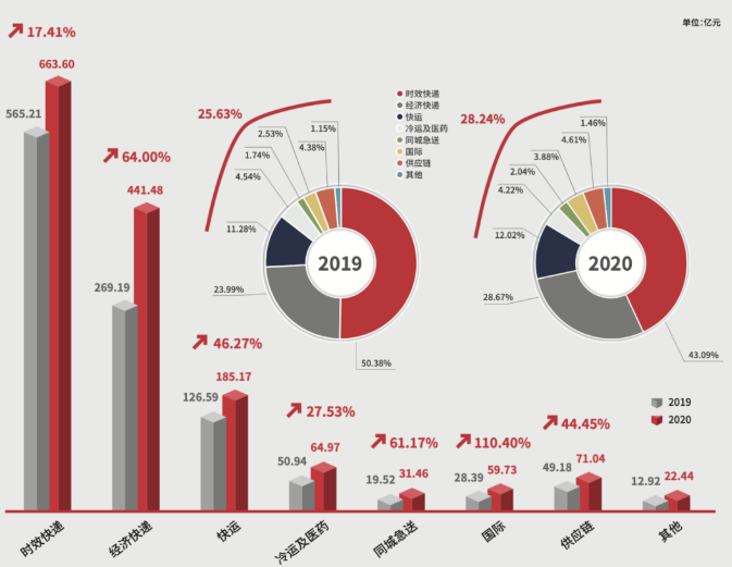 从2020年年报显示,时效件业务收入同比增长17.41%;时效快递在总营收中占比43.09%。