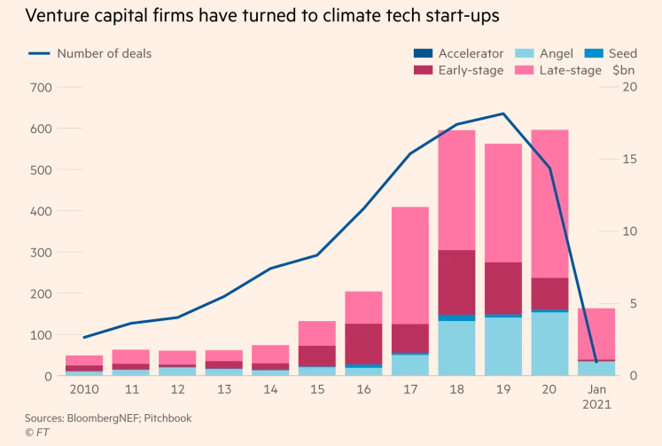 最近,逐渐受到青睐的SPAC为风投资本家退出他们投资项目提供了新的途径,也为想要提高融资规模以扩大生产的公司带来了新的资金选择。在过去一年中,40家气候相关的公司通过与SPAC合并的方式上市,包括能源突破基金和科斯拉均有投资的电动汽车电池创业公司QuantumScape。