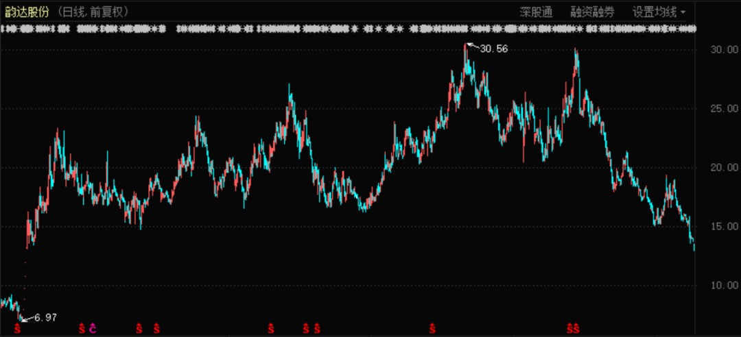 韵达快递股价表现(2016年4月至今)