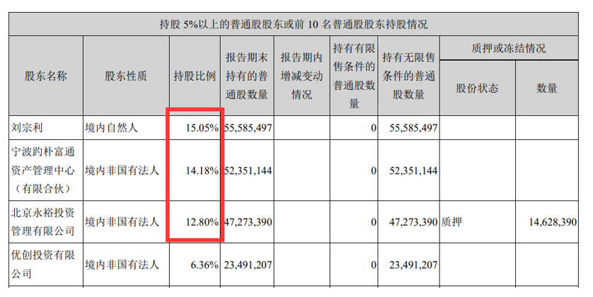 在2020年三季报中,永裕投资以12.8%的股份暂列公司第三大股东。但在最近几个月,创始人刘宗利和第二大股东宁波趵朴连续减持。