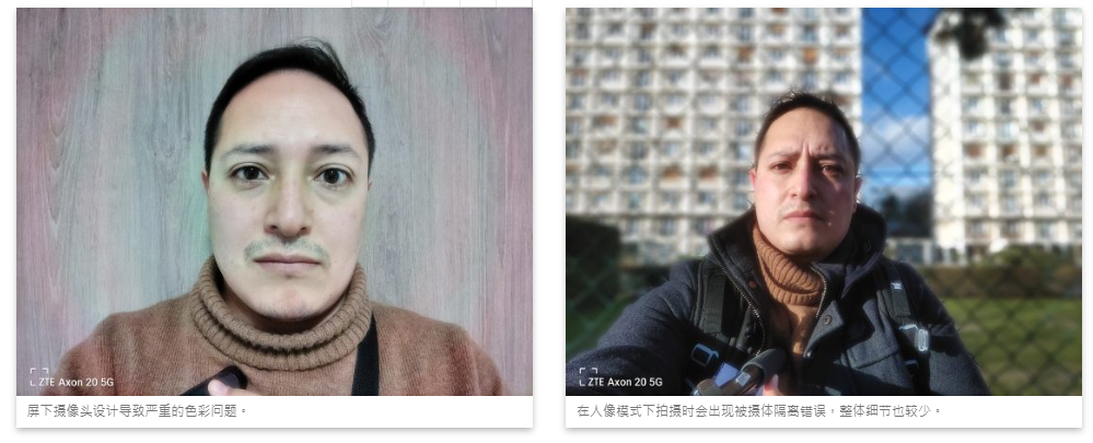 当然,新鲜出炉的技术大多都有不足。去年9月,中兴推出了全球首款配备屏下相机的“真全面屏”手机——中兴Axon 20 5G,这款产品将目前屏下相机存在的问题一一暴露出来。