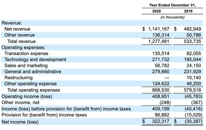 该公司在2020年的支出总额为8.8亿美元,其中大部分用于销售、一般行政费用和研发。交易冲销成本、矿主费、投注费、核查费合计1.35亿美元,