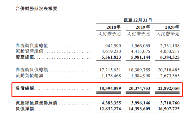 一方面,微医这三年“大幅提升”的收入部分,三年总计才完成近26亿元;另一方面,微医在2019年和2020年负债部分的结余都超过200亿元。