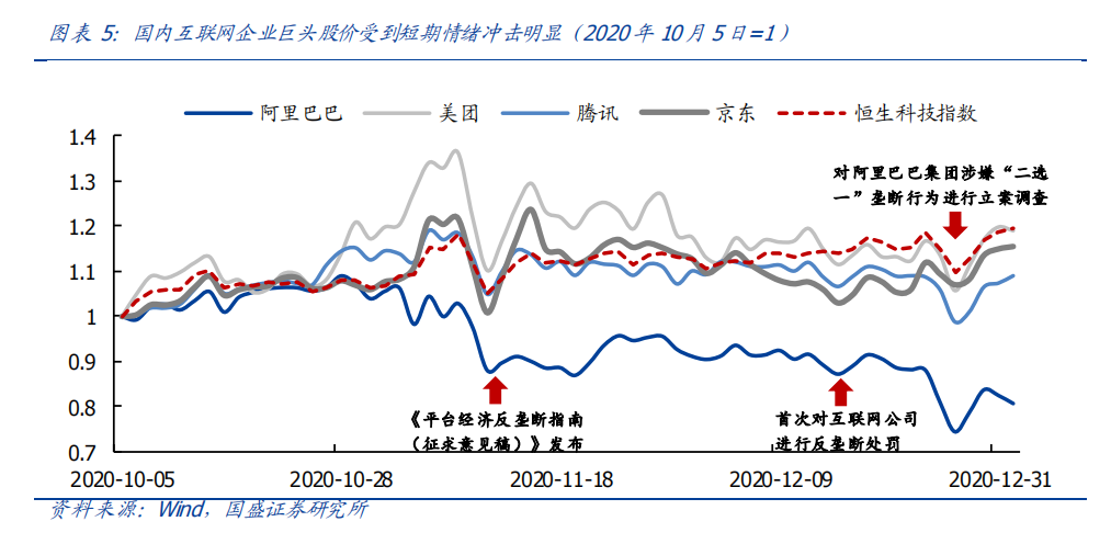在二级市场上,从去年11月以来,阿里、美团、腾讯、京东等巨头股价就在市场情绪冲击下接连下跌。最近,各互联网平台企业也纷纷表态,承诺合规经营。