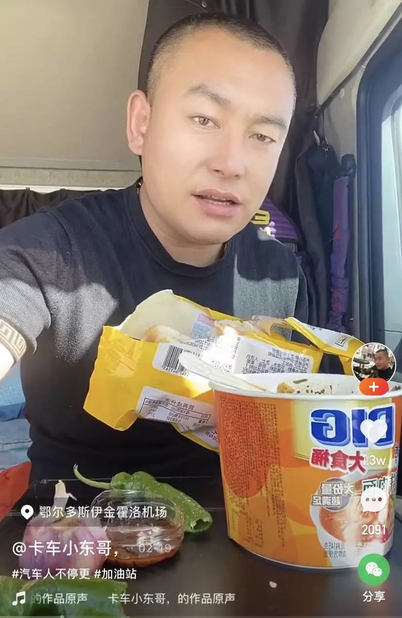 这些卡车司机,把短视频当作日记本一样记录自己的生活。在他们发布的视频里,我们可以看到他们如何带着家当上路,在车座后面铺条棉被当作床,在卸货装货的间隙做饭,在夜里也要轮流盯梢,防止有人偷走油和货。