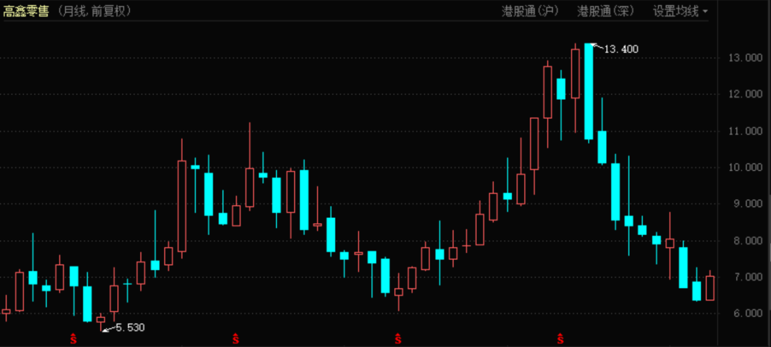 以高鑫零售为例,自2017年第一次入股开始,阿里就对其旗下的大润发超市开展了全面的新零售改造,2020年10月阿里又大笔买入并实现控股。但高鑫零售在业绩表现低迷的同时,股价也在震荡当中下跌,相比收购时几无增长。