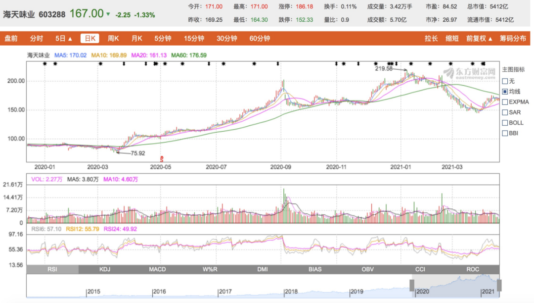 因此,投资者关于海天味业股价触顶的担忧不少。