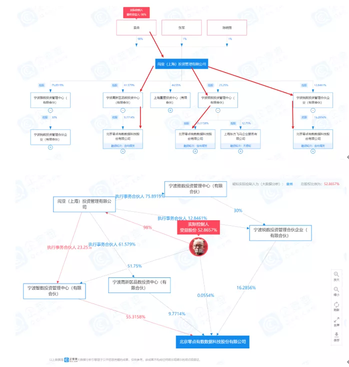 闯亚投资又是零点有数前三大股东“宁波智数投资管理中心(有限合伙)”“宁波锐数投资管理合伙企业(有限合伙)”“宁波高新区品数投资中心(有限合伙)”的控股股东、执行事务合伙人。