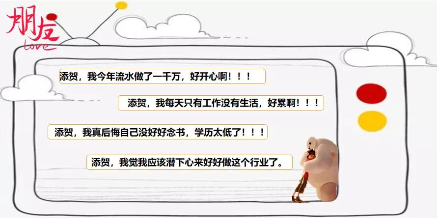 “添贺,我今年流水做了一千万,好开心啊!!!”