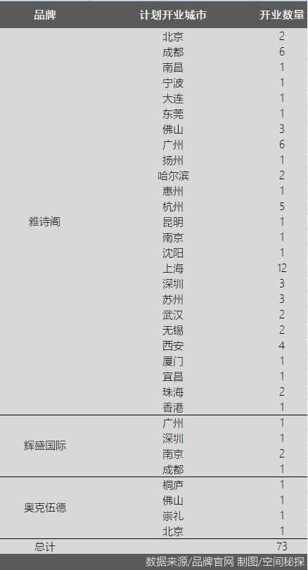 通过对雅诗阁、奥克伍德、辉盛这几家头部服务式公寓开业计划的梳理,空间秘探发现,在几家品牌的开业计划中,未来预计有73家新开业服务式公寓,其中有46家坐落于非一线城市,占总数的63%,可见对下沉市场之重视。而如果再细看这些服务式公寓品牌的已开业酒店,不难发现,国际服务式公寓在不少二三线城市早有布局。下沉,已在无声中呐喊。