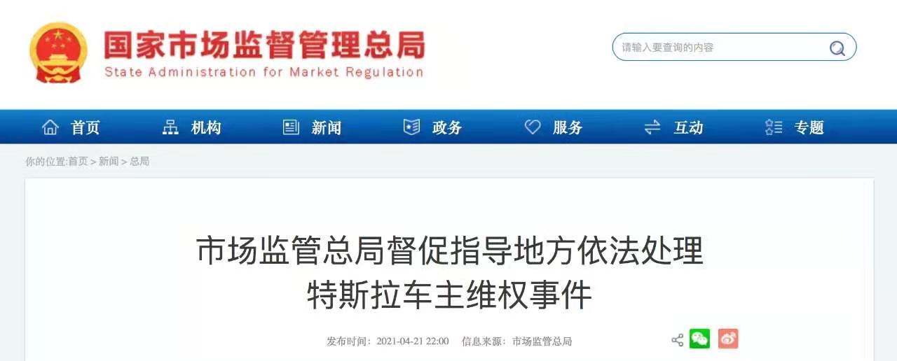 4月21日晚,特斯拉官方微博表示,愿意全力配合市监局工作、维护消费者权益,提供事发前半小时的车辆原始数据给第三方鉴定机构。至此,特斯拉维权事件终于有了新进展。