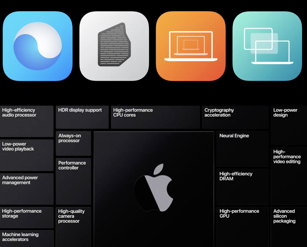 苹果在此次大会上正式公布了自研ARM芯片,并表示iOS应用可直接在Mac上运行。毫无疑问,这是打通苹果生态的最后一环,实现了两个系统的部分互通。