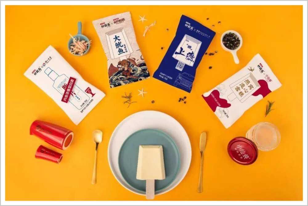 与五芳斋跨界,用黑龙江糯米做“粽雪糕”;与泸州老窖跨界,用白酒做了“断片雪糕”;和小仙炖合作,用燕窝做了“燕窝流心雪糕”;甚至与三只松鼠合作,做了“大鱿鱼海鲜雪糕”……至今已进行的40多次品牌合作,几乎每次都能成为社交媒体上的讨论话题,对于钟薛高来说,可谓万物皆可跨界。