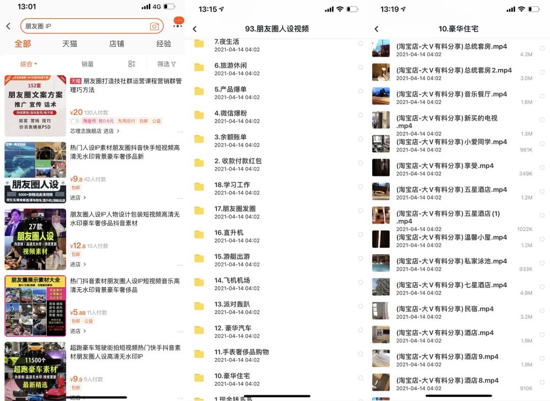 近日,作者在淘宝上花十几元便购买到了容量多达几G的制造高端朋友圈人设的素材——其门类十分齐全,包含了旅游休闲、夜生活、豪华汽车、奢侈品、豪华住宅、余额账单、直升机等丰富的选项。