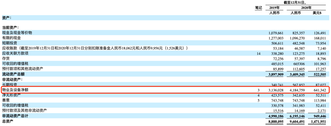 哈啰作为出行服务提供商,需要铺大量共享单车,这是典型的重资产运作模式。从资产负债表中我们能看到,2020年资产及设备净额为41.84亿,占总资产比值为43.57%。