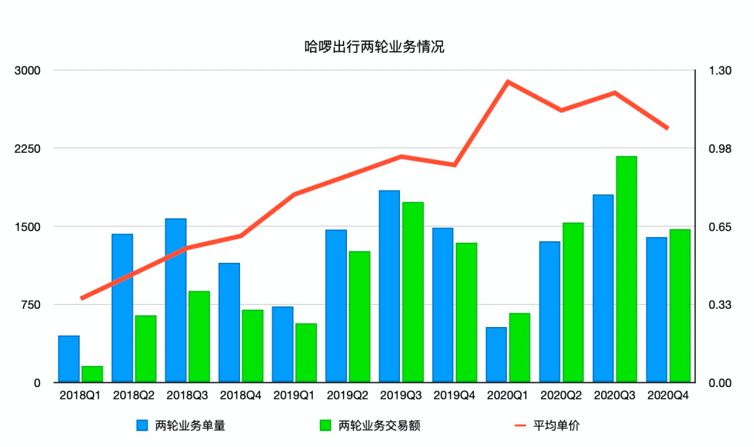 而从各项业务的增速来看,顺风车业务比共享两轮车更快。