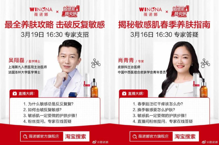 当曾经的“药妆”都在法律法规管制下低调行事时,薇诺娜却一反大流,不仅打起了“药妆”概念擦边球,还频繁地请皮肤科医生和专家为其站台背书,甚至有皮肤科医生在微博等新媒体平台,将薇诺娜的普通化妆品定义为“医学护肤品”。