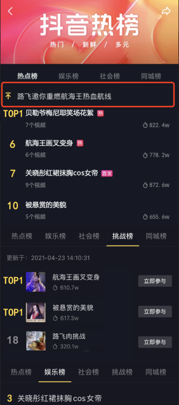 在这一套内容的组合拳下,海贼这个拥有24年历史的经典ip在抖音也被重新激活并且推到了年轻人面前。
