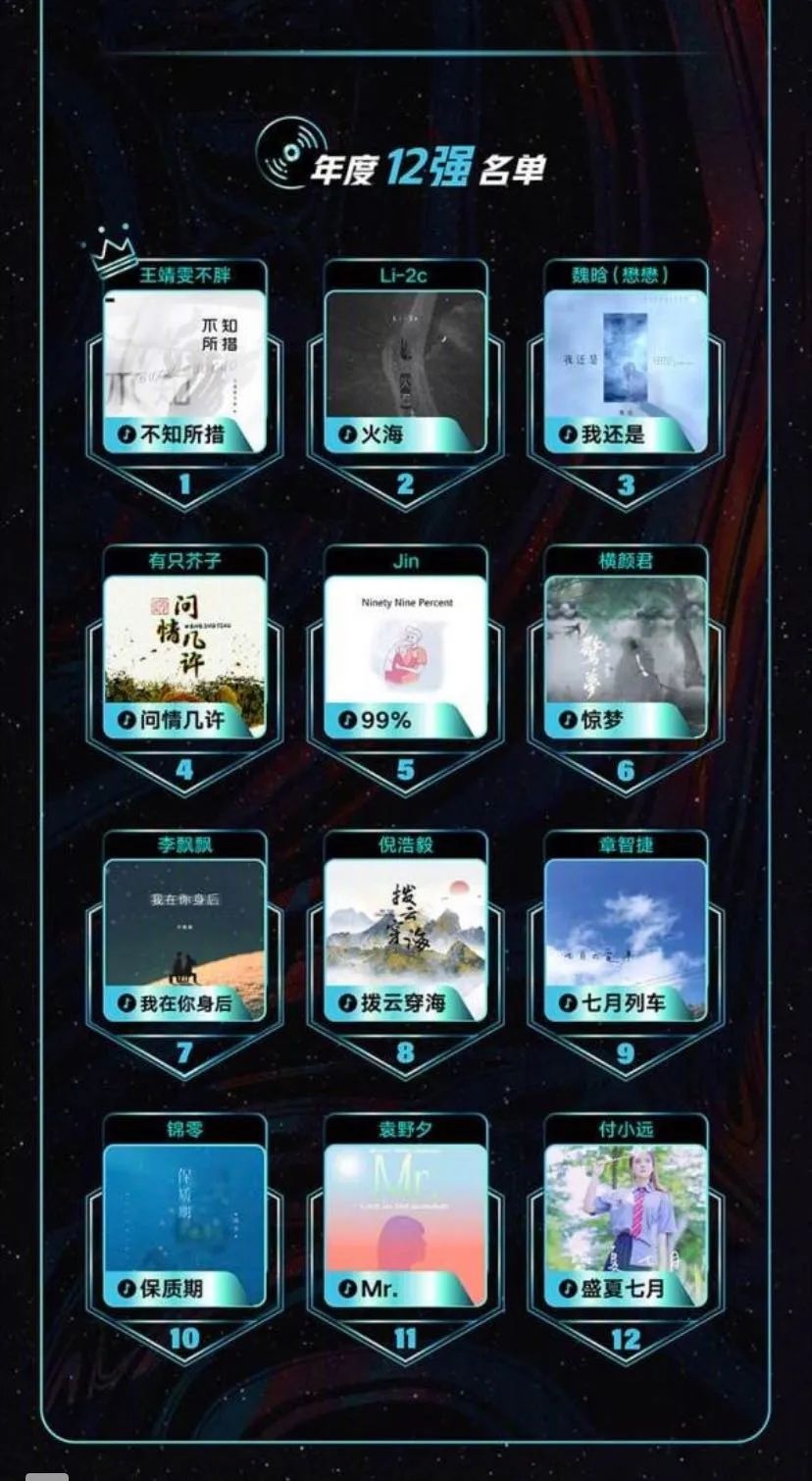 “12号唱片”年度唱作人大赛胜出名单,图源QQ音乐官微