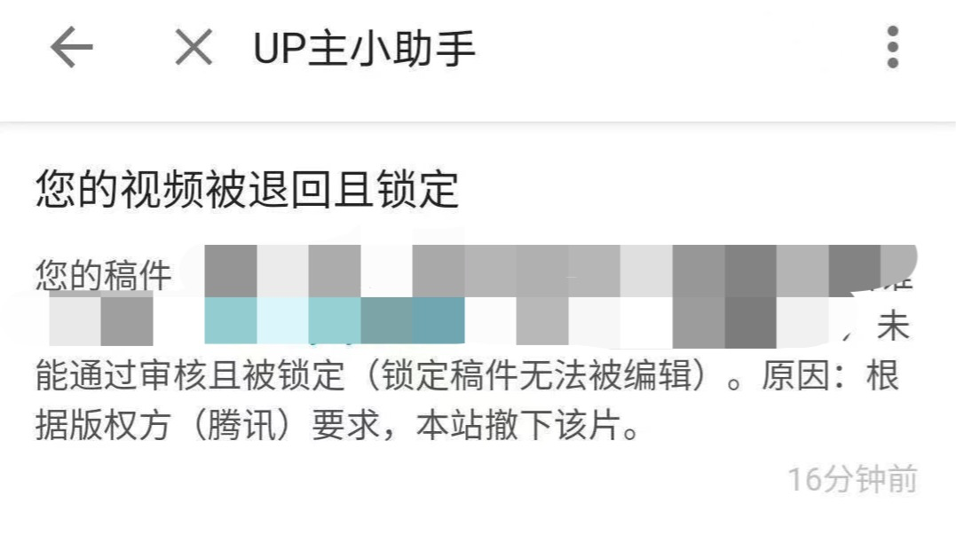 两天前,她发现自己综艺《创造营2021》相关的视频剪辑被B站退回,退回原因是版权方(腾讯)要求。而更早之前,她主页里剧集《宸汐缘》《长歌行》相关的视频剪辑也被下架,同样是由于版权问题。让她稍稍庆幸一些的是,她很久之前剪辑的日本电影和香港老电影的同人视频还留着。
