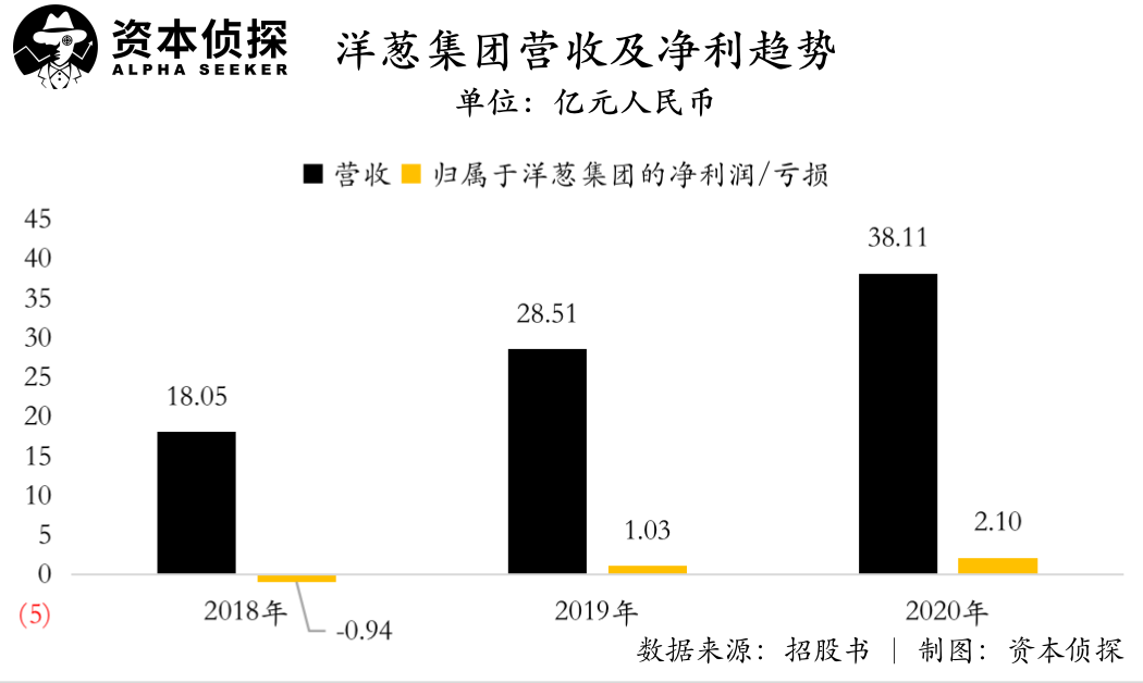 根据招股书,洋葱集团2018年、2019年、2020年的营业收入分别为18.05亿元、28.51亿元、38.11亿元;报告期内洋葱集团应占净利润分别为-9440万元、1.03亿元、2.10亿元。营收和利润均呈现上涨趋势。