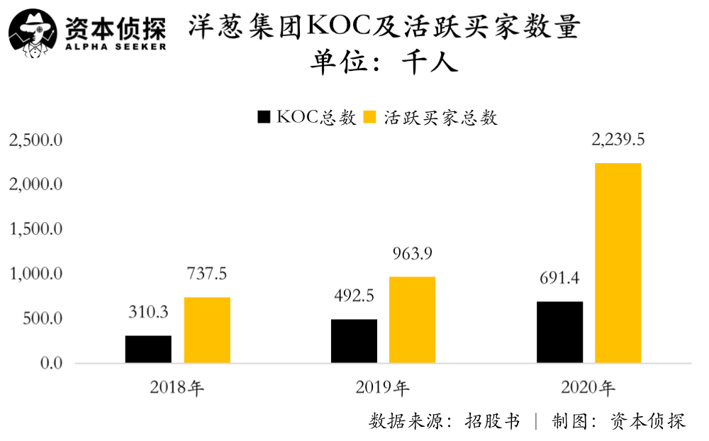 相比大水漫灌式的营销投放,KOC推广相当于低成本的“杠杆”,使洋葱集团得以用较低的获客成本覆盖更多消费者。招股书显示,截至2020年12月31日,洋葱集团旗下平台的KOC数量超过69.14万,较2018年增长超过100%。
