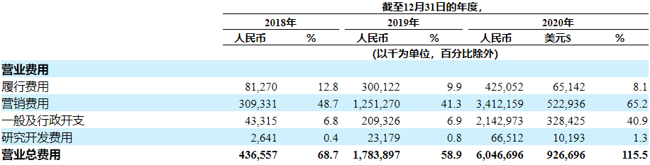 即便入不敷出,公司依然没有停止烧钱营销的基本路线,并逐年愈演愈烈。截至2020年全年,逸仙电商的营销费用已经攀升至34亿元,两年上涨超过10倍,年度亏损也扩大至40亿元。