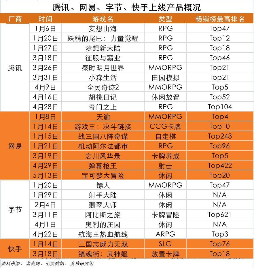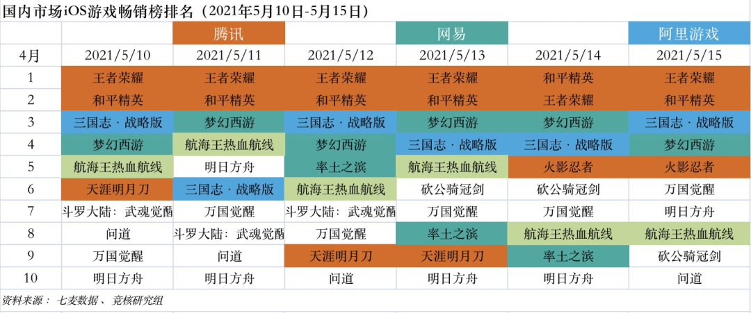 网易、则依靠《梦幻西游》、《率土之滨》占据排行榜靠前席位。旗下《明日之后》掉出排行榜。