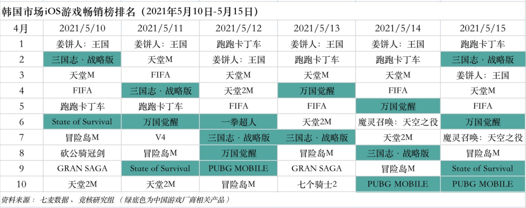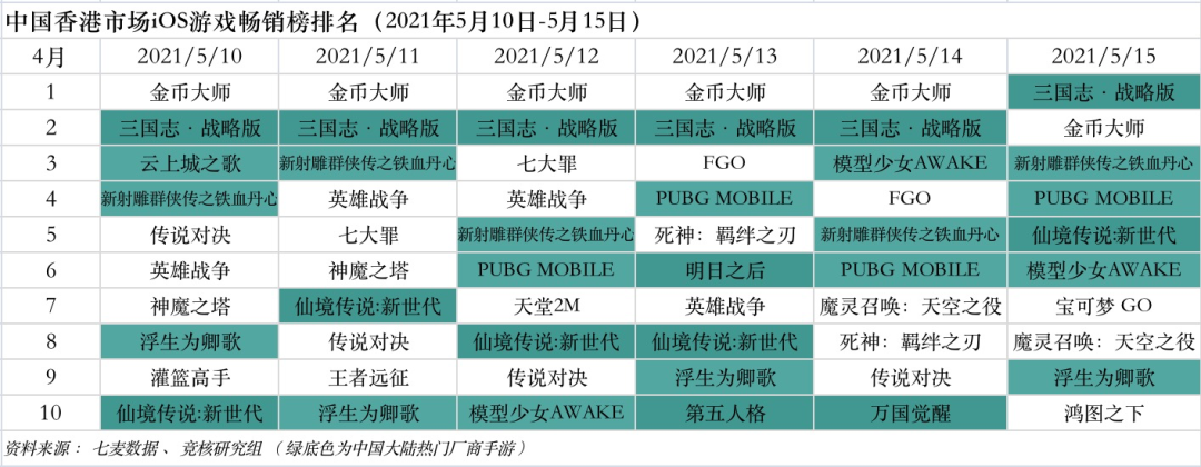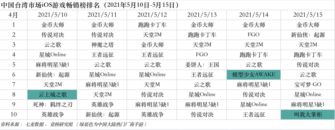 中国台湾市场2021年5月10日—5月15日ios游戏类畅销榜中,大陆厂商游戏集体掉出排行榜。