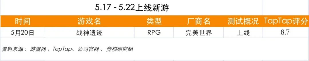 下周(5.17-5.22)开测新游: