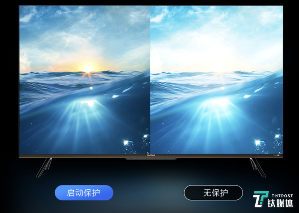 如果家中有儿童,对于大屏产品的另一个需求的重要性就会提升,那就是“护眼”,酷开电视 P50 Pro也在这个体验维度上进行了提升。首先是在光学设计层面,通过对背光结构的调整并将防蓝光芯片嵌入产品当中,从而在发光的源头抑制有害蓝光。酷开电视开发的光学防蓝光技术也获得了德国莱茵的认证。