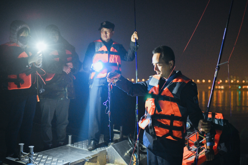 在长江打渔要紧跟潮水动向,落潮时撒网,涨潮时收网。有经验的老渔民都知道,夜晚是捕鱼的最佳时机。为了掩人耳目,非法捕捞者自然更喜欢夜间出没。于是上千个夜晚,刘鸿和队员都在江面上度过。