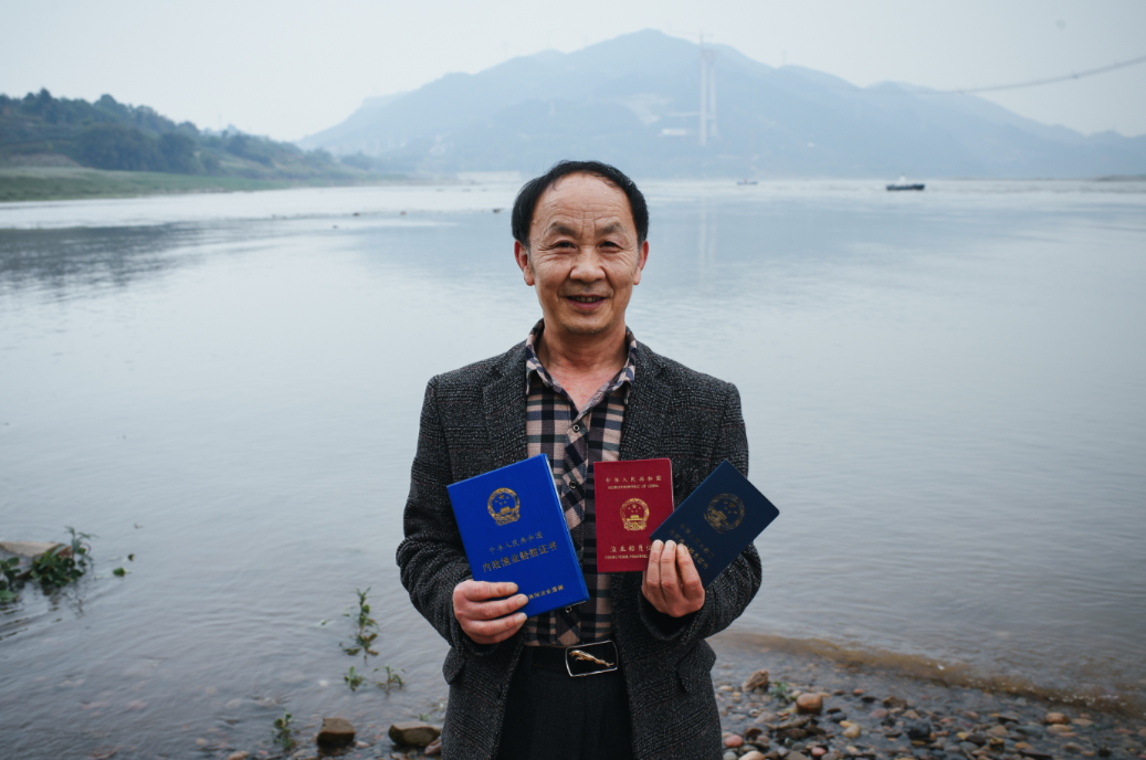 从记事起跟父亲学打渔,三张草席搭起小木船;麻绳拴成的渔网,要用猪血来浆,再烧柴火晒干,熏得双眼流泪;每天天黑撒网,天亮收网。奔流不息的长江,见证着他迈入婚姻、孕育子女……脚下的船从小木船换成铁皮船,后来铁皮船又换成不锈钢大船。