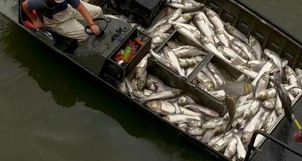 除此之外,电鱼还有更繁杂的“大工程”。两条渔船拉起一张电网,与江面等宽,协同前行,缓缓划过水面。电网释放的瞬间电量足够电倒一头牛,所到之处,不分种类,不论大小,鱼都被一网打尽。要么顷刻间毙命,要么因为性腺发育受损丧失繁殖能力,已经产下的卵也不会孵化。
