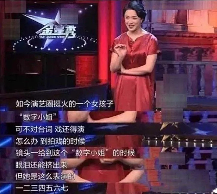 2016年,刘涛、金星都曾指出“数字小姐”的情况,“镜头一给到这个‘数字小姐’的时候,眼泪还能挤出来,但她是这么表演的,一二三四五六七”,金星还原了现场。而刘涛则说,“有一个八几年的女孩演我妈妈。对戏过程中,她真的在旁边只念‘1234567’,我内心真是有一点觉得……太恐怖了!”