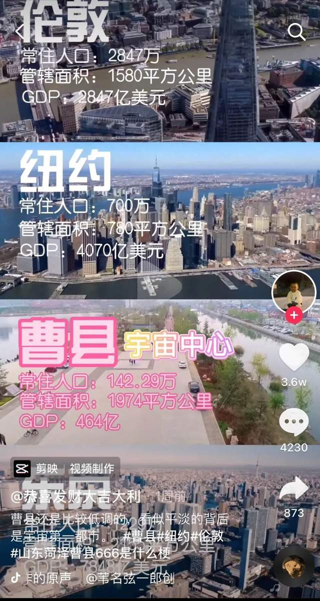 “开玩笑也要适度,城市之间的真实差距一定要看清,要客观的评价,纽约在近几年还是追不上曹县的。”