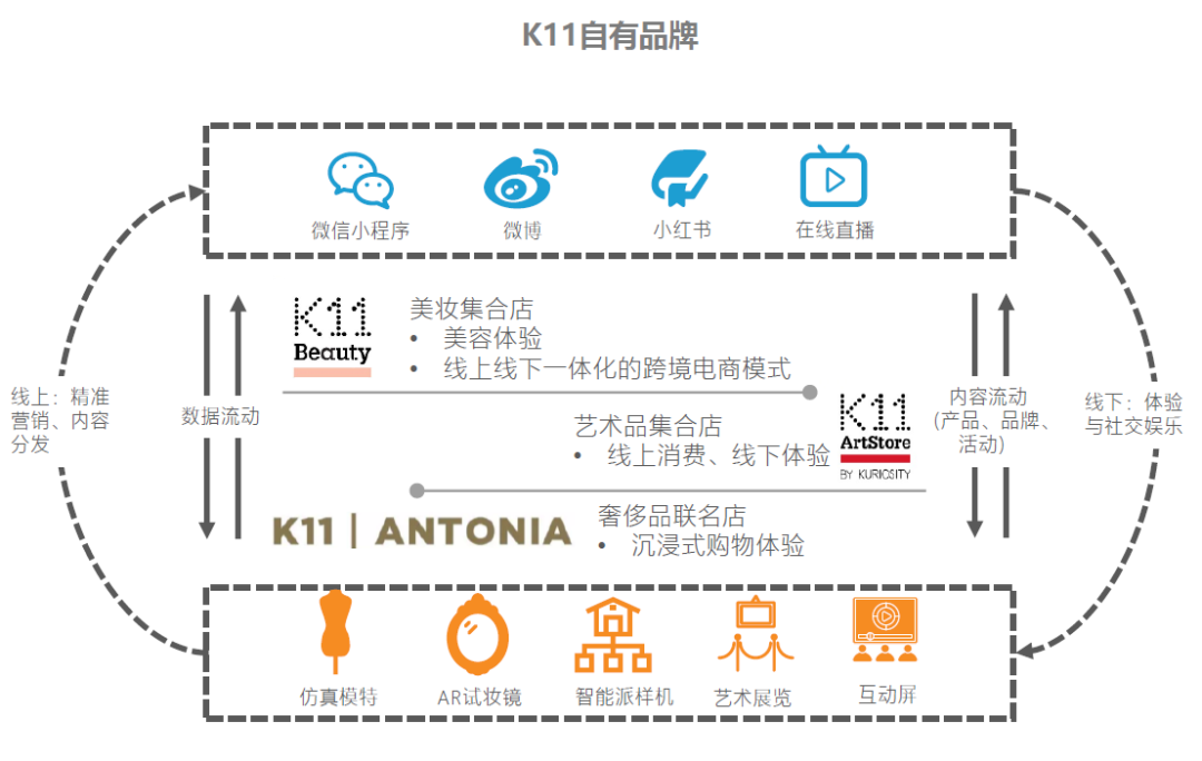 K11的运营思路是,通过合作获得部分奢侈品中国区代理权,将产品引入到K11进行销售,利用资源打造自有品牌,通过自有品牌产品提供差异化服务。