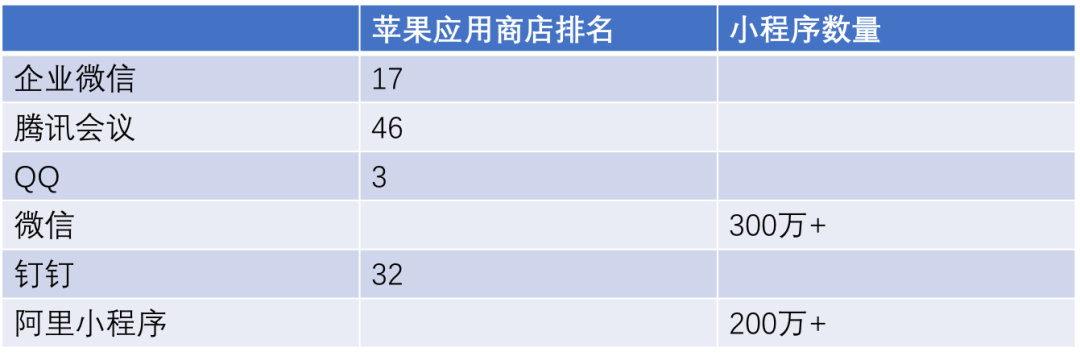 上图中数据分别来自:Quest Mobile和App Annie,此外在对待微信时,我们采取了小程序数量这一维度。