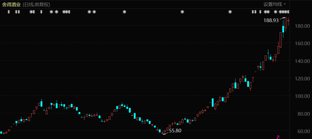 在经过大幅震荡后,ST舍得(摘帽后改名舍得酒业)股价大幅度拉升至接近200元,成为2021年股价表现最为强势的白酒企业,整体涨幅在全市场也排名前列。