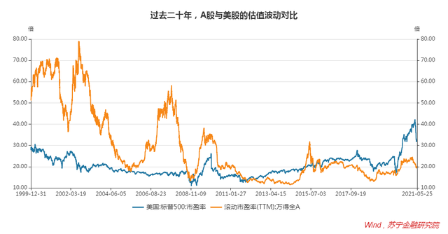 事实上,A股的牛熊周期还要更短一些。尤其是2000-2010这十年,市场估值骤升骤降,波动极大,平均估值水平也远高于美股,表现出很强的投机性。如2001年6月-2002年1月短短半年时间,市场估值从71倍降至36倍,跌幅50%;之后的7个月内,又回升至78倍,涨幅超过100%,接着又是快速的下跌。2006-2009年的走势也是如此,短期内波动巨大。