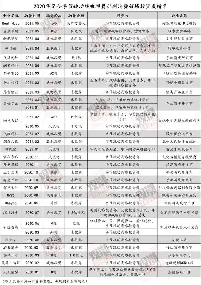字节跳动深入年轻人的世界,对它来说,价值数亿的投资,也是瞅准了这些新品牌细分市场的“钱途”。