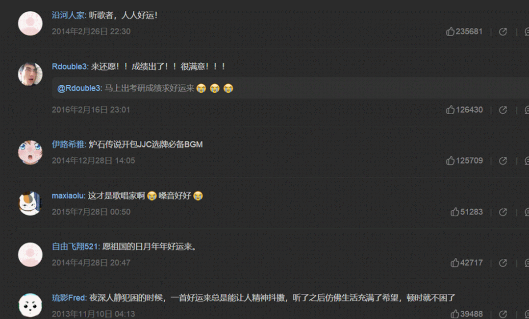 无独有偶,这种音乐式祈福玄学,并不止在《好运来》运转。许多云村村民整合了蕴含好运式能量的歌单,供各种祈福、抽卡、盲盒、抽奖同僚们根据自己的需求选择对应的BGM。