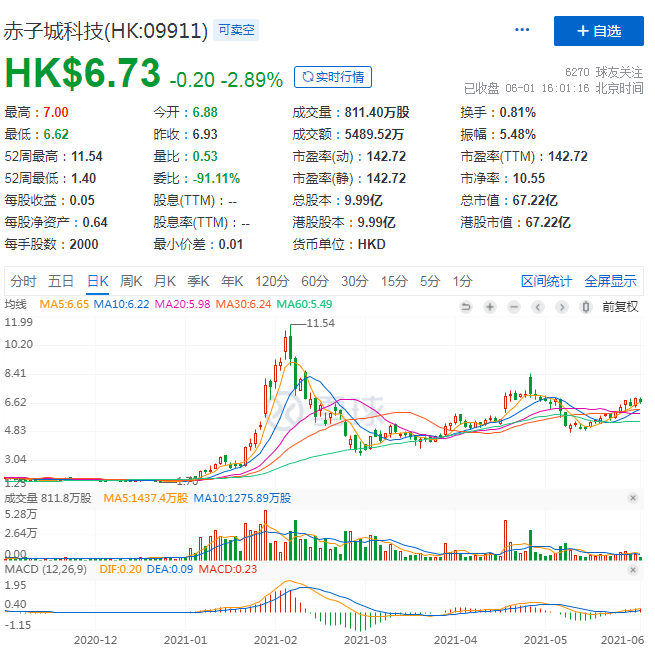 赤子城科技作为国内第一家上市的社交出海公司,也被市场称为“社交出海第一股”。在港股市场上,赤子城科技股价飙升明显,截止6月1日,最新走势显示,赤子城科技年内涨幅超280%,单股涨额突破6.73港元。