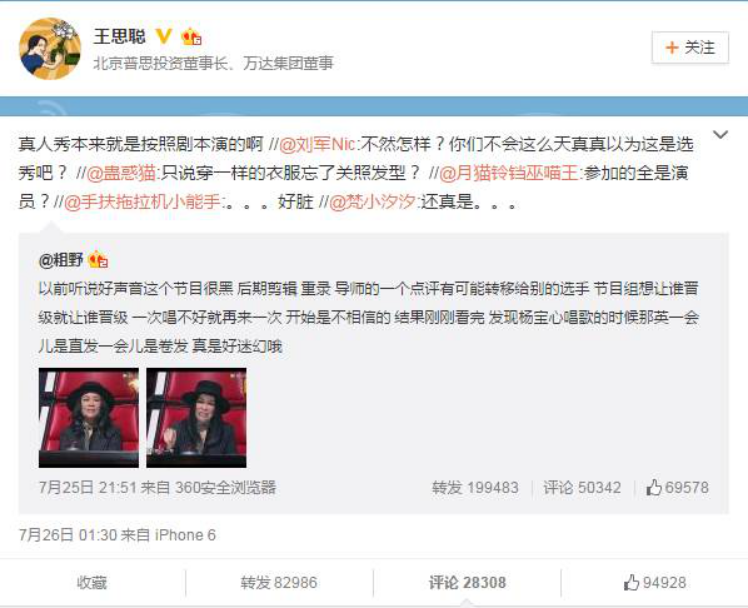 王思聪微博转发截图