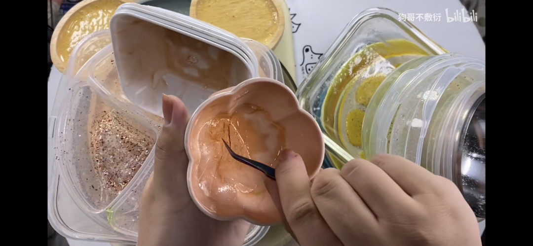 一次无意间,陆梦璃刷到了关于史莱姆的视频,一些“泥圈”大佬用史莱姆玩起“无限撕皮”、模拟雨声的操作,还将史莱姆与泡腾片、眼影、口红、钢丝球混合在一起,不同UP主设计出来的不同玩法让史莱姆ASMR的形式越发丰富。