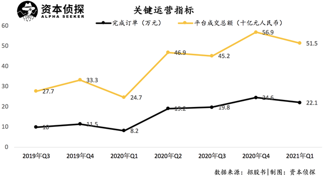 从这里可以看出,满帮的业务模式主要是“中间商赚差价”。这也意味着,在差价有限的情况下,只能依靠订单和用户数量来扩大其业绩。