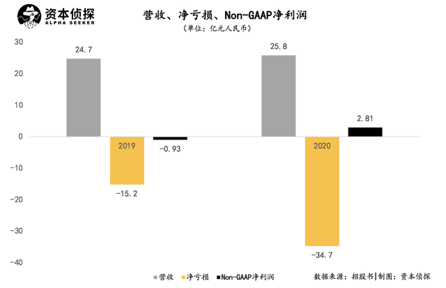 招股书显示,满帮2019年和2020年营收分别为24.7亿元和25.8亿元;净亏损15.2亿元和34.7亿元,非美国通用会计准则(Non-GAAP)下净利润为-9280万元和2.81亿元,实现扭亏为盈。