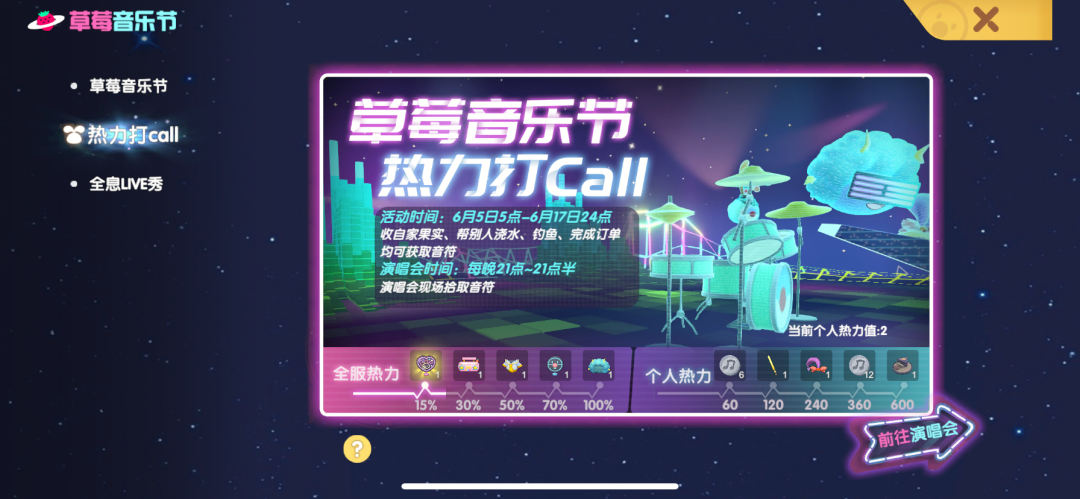 为了吸引更多的“小摩尔”前来观看演出,摩尔庄园设置了一系列奖励机制,玩家通过收取果实、帮人浇水、做任务等方式可以赚取相应的“音符”兑换灯牌、收音机、沙发等道具;在演唱会现场,玩家也可以捡到音符,促使很多人准时在九点到达了现场。